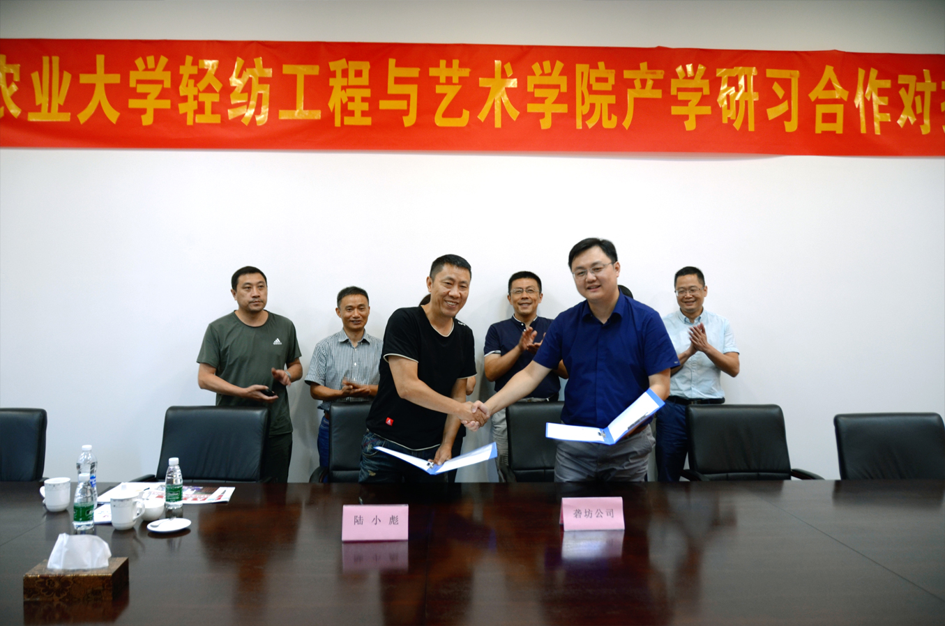 最后,在與會(huì)人員的共同見證下,陸院長(zhǎng)、杜院長(zhǎng)與卞總對(duì)“安徽農(nóng)業(yè)大學(xué)輕紡工程與藝術(shù)學(xué)院校外實(shí)習(xí)基地”進(jìn)行了簽約和揭牌,并實(shí)地參觀了MatchU碼尚、百年益新面粉大樓及大礱坊歷史文化長(zhǎng)廊,本次產(chǎn)學(xué)研習(xí)對(duì)接會(huì)議圓滿結(jié)束。