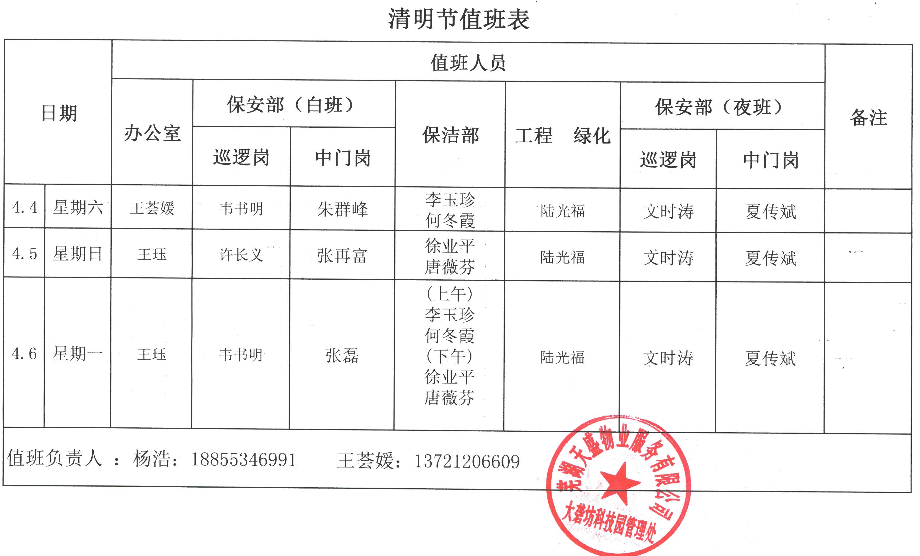 2.天盛物業(yè)清明節(jié)假期值班表