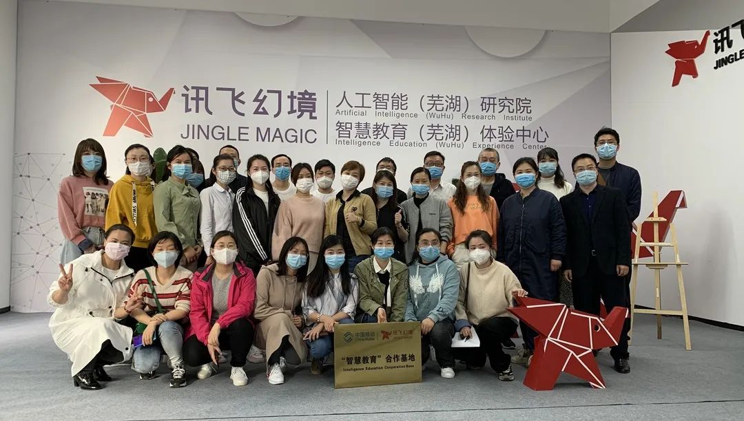鏡湖區副區長束曉偉及政府領導、相關單位負責人,訊飛幻境政企事業部執行總裁李寧、中國移動蕪湖分公司總經理楊震等出席并見證簽約儀式,共同為雙方“智慧教育合作基地”揭牌。