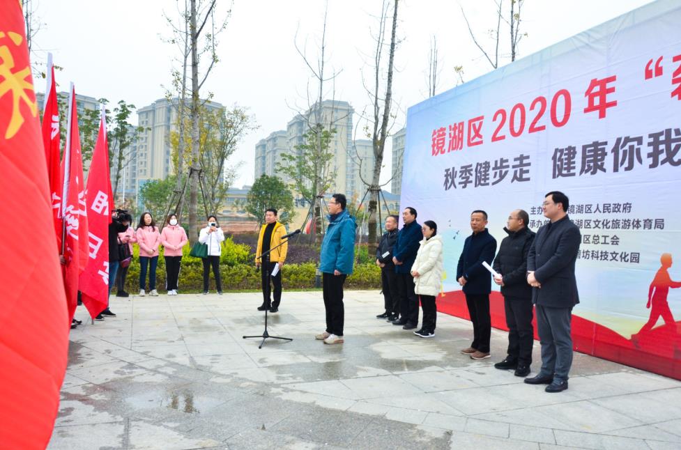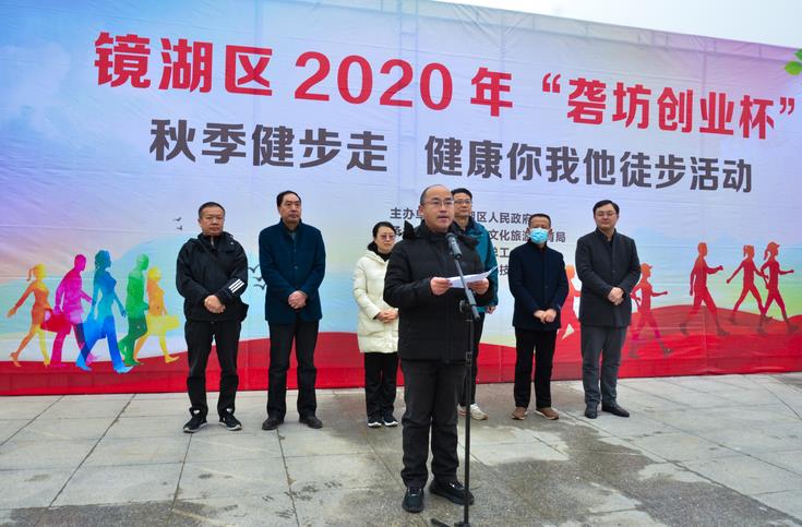 為落實鏡湖區2020年"健康鏡湖"全民健身活動計劃,提高全民參與科學健身的意識,12月3日,由鏡湖區人民政府主辦,區文化旅游體育局、區總工會承辦,大礱坊科技文化園協辦的2020年"礱坊創業杯"秋季健步走、健康你我他徒步活動在汀棠公園隆重舉行。區四大班子領導靳立剛、陳娟娟、王建明、朱光友、章建華,市體育局二級調研員江思紅等市、區領導,園區負責人卞國琛等出席開幕式。