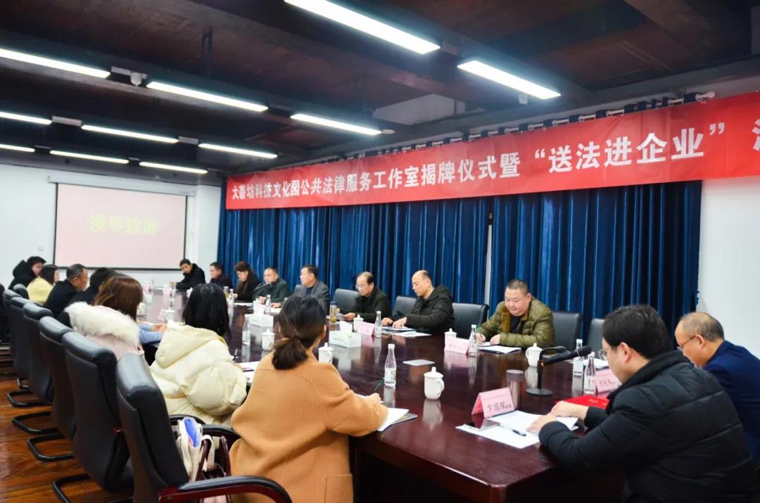 12月11日,大礱坊科技文化園公共法律服務(wù)工作室揭牌儀式暨“送法進(jìn)企業(yè)”活動(dòng)在園開展,區(qū)司法局、區(qū)委政法委、區(qū)法院、區(qū)檢察院、區(qū)工商聯(lián)、區(qū)經(jīng)信局、區(qū)委常委、政法委書記魏峰及各成員單位、園區(qū)負(fù)責(zé)人、企業(yè)代表等50余人出席活動(dòng)。