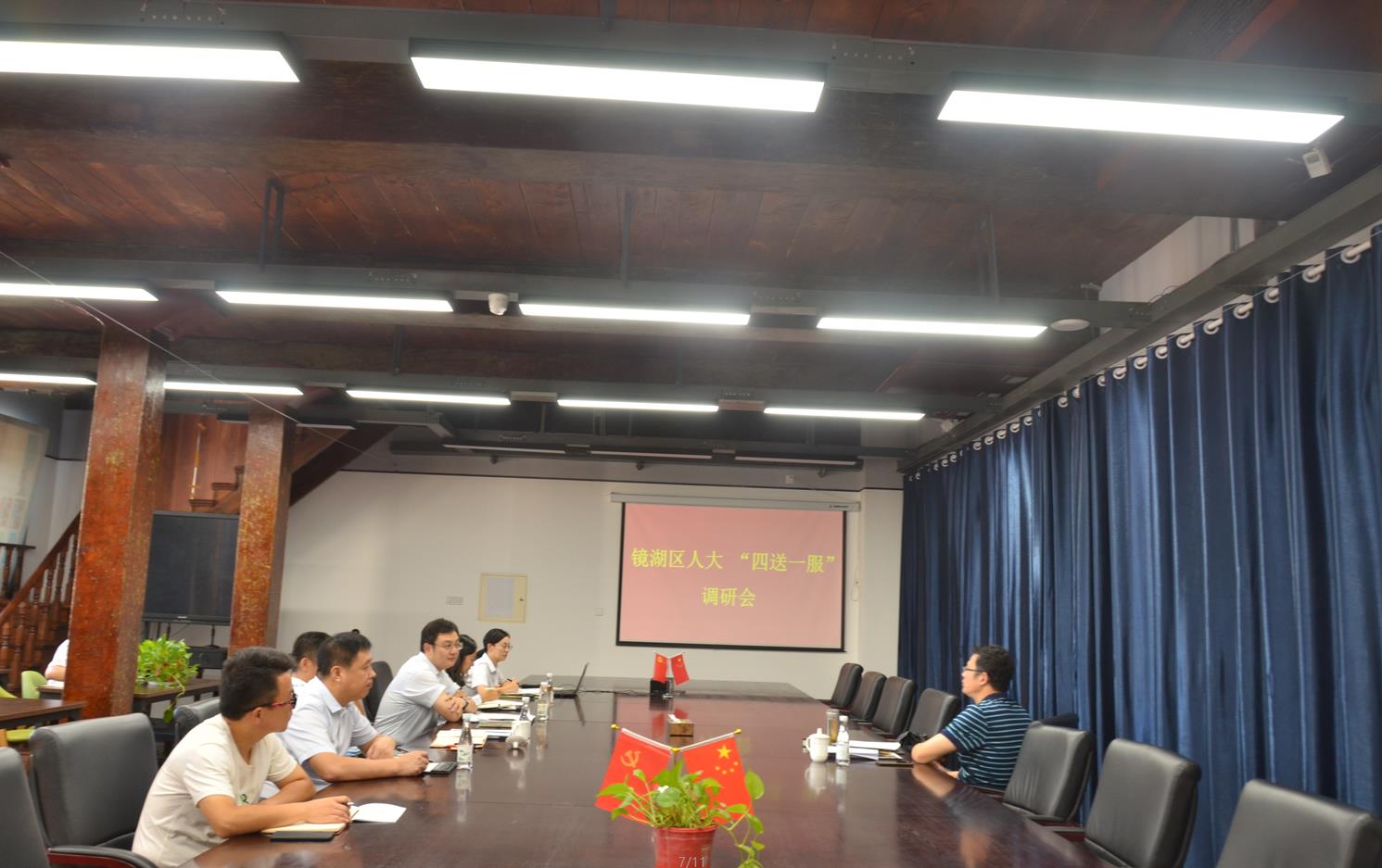 9月3日上午,鏡湖區人大常委會黨組副書記、主任靳立剛、區科技局局長陳鈞、副局長張蔭杰一行來園開展“四送一服”工作,園區負責人卞國琛等同志陪同調研。